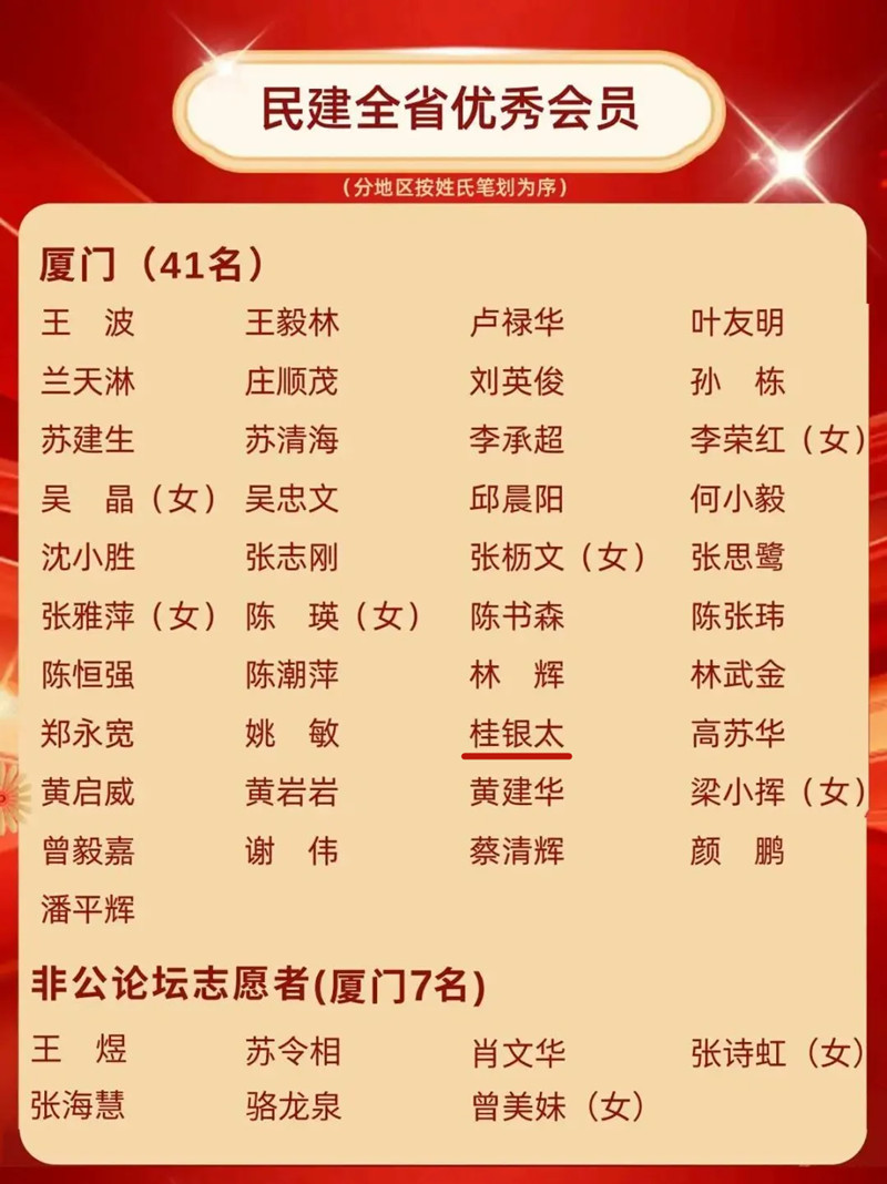 今年是中国民主建国会成立80周年、福建民建组织建立75周年。民建会员、厦门市委委员、外贸公司支部主委、创业人董事长桂银太先后荣获两项重要荣誉——民建中央“民建全国社会服务工作先进个人”与民建福建省委“全省优秀会员”称号,展现了新时代企业家立足本职、服务社会、积极履职的担当与风采!